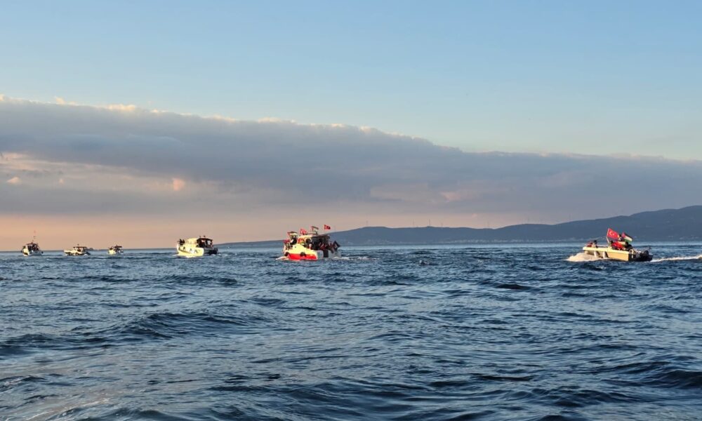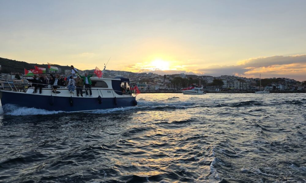 Bursada Filistin’e Destek Platformu öncülüğünde ve AK Parti İl ile İlçe Başkanlıklarının destekleriyle Mudanya Güzelyalı Mahallesi’nden yaklaşık 10 tekne, Türk ve Filistin bayraklarıyla “Kararlıyız, Sumud’un Yanındayız” sloganı eşliğinde Marmara Denizi’ne açıldı. Düzenlenen etkinliğe AK Parti Bursa milletvekilleri Ahmet Kılıç, Ayhan Salman, Osman Mesten ve Mustafa Yavuz AK Parti Bursa İl Başkanı Davut Gürkan ile sivil toplum kuruluşu temsilcileri ve çok sayıda vatandaş katıldı.