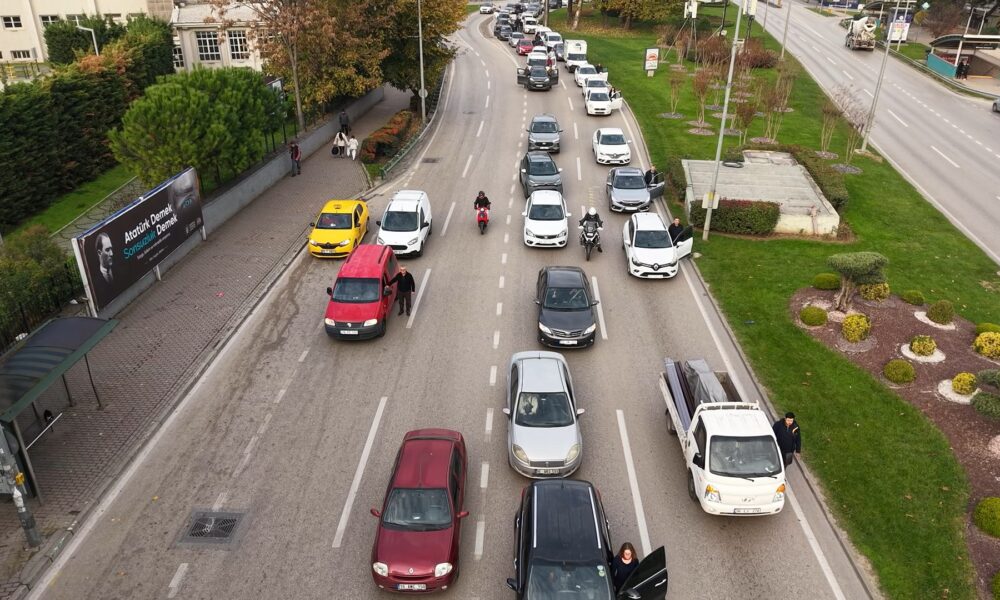 Bursa’da hayat durdu; Ata’ya saygı dron kamerasında
