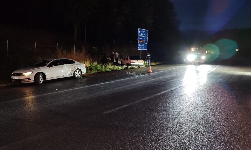 Kaza saat 21.00 sıralarında İnegöl-Domaniç yolu Gündüzlü Mahallesi Kavşağında meydana geldi. Seyir halinde olan Hasan K. (59) yönetimindeki 43 RT 478 plakalı otomobil, Gündüzlü Mahallesinden yola çıkan İsmail T. (52) yönetimindeki 16 BIR 076 plakalı otomobile yandan çarptı. Çarpmanın şiddetiyle araçların savrulduğu kazada sürücüler yaralanmazken, 16 BIR 076 plakalı otomobildeki yolcular Nurhayat E. (27) ve Yusuf T. (28) yaralandı.
