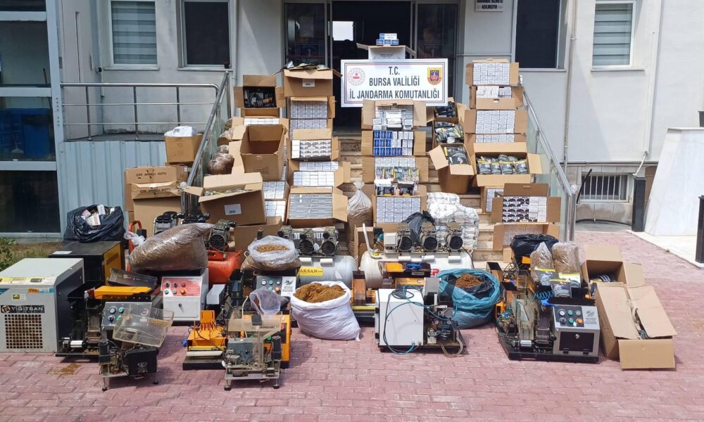 Gemlik Jandarma Komutanlığı İstihbarat Şubesi ile Kaçakçılık ve Organize Suçlarla Mücadele Şubesi ekipleri, alınan ihbarı değerlendirip, kaçak sigara üretimi yapıldığı tespit edilen 3 adrese, Cumhuriyet savcılığı izniyle, eş zamanlı operasyon düzenledi. Aramalarda kaçak sigara yapımında kullanılan depolarda 80 bin tütün basılı sigara, 301 bin 400 makaron (filtreli sigara kağıdı), 173 kilogram kıyılmış tütün, 47 bin 400 boş sigara kutusu, 4 bin 800 sigara filtresi, 10 elektronik sigara basma makinesi, 4 kompresör ile 2 hava makinesi ele geçirildi. Jandarma ekipleri, kaçak sigara üretimi yapan V.A. (43), A.A. (43), E.O. (54) ve M.Tyi (52) gözaltına aldı. Sorguları devam eden şüpheliler, ifadelerinin ardından adliyeye çıkarılacak. Gemlik Cumhuriyet Savcılığı, konuyla ilgili soruşturma başlattı.