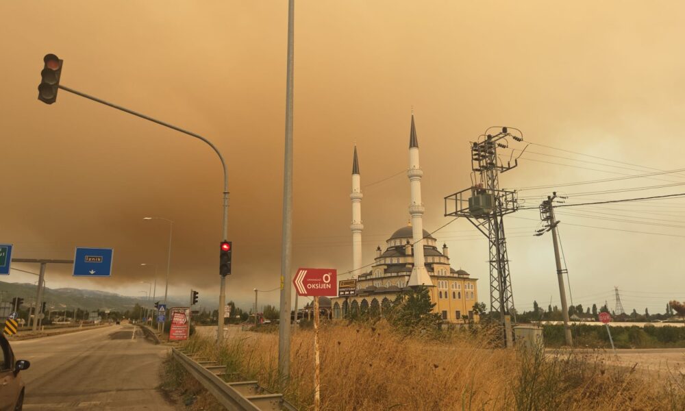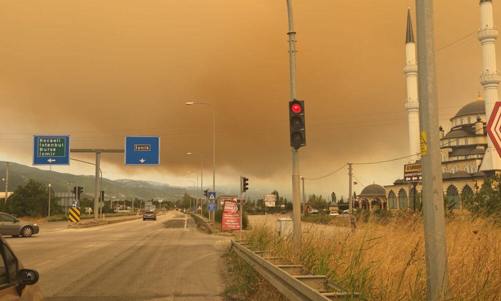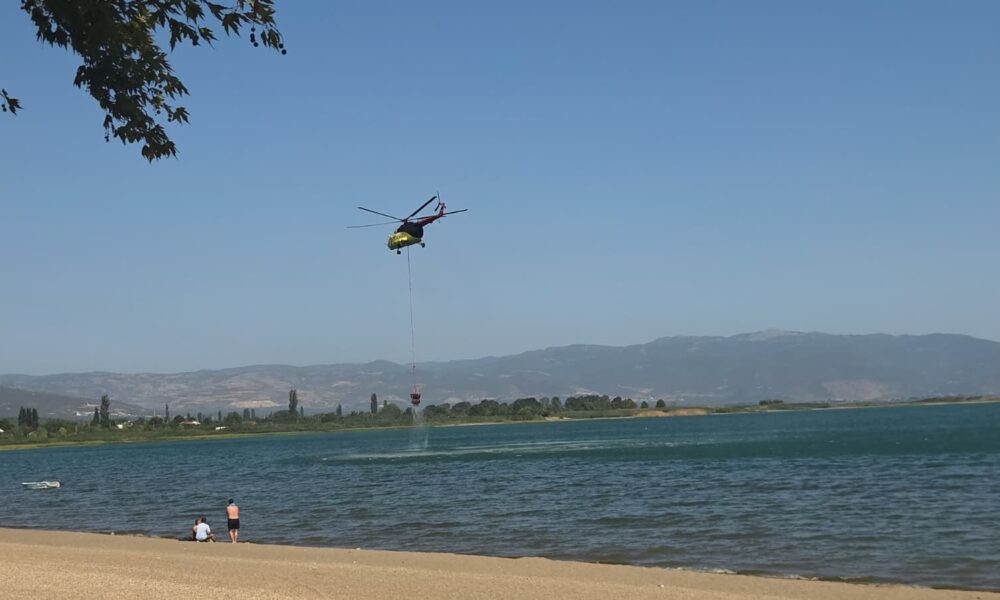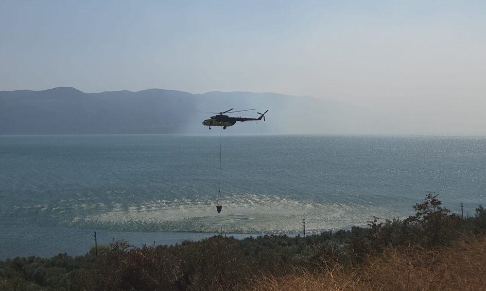 Bursa’nın İznik ilçesinde makilik alanda yangın çıktı. Bölgeye sevk edilen ekipler, yangına karadan ve havadan müdahale ediyor. Fotoğraf: Hasan BOZBEY/ İZNİK, (Bursa) (DHA)