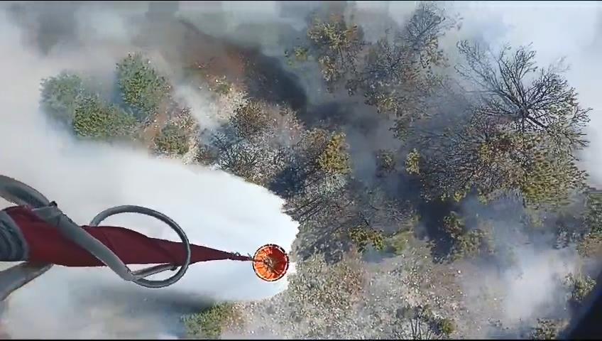 • Bursa'nın Keles ile Orhaneli ilçesinde ormanda çıkan yangın yaklaşık 3 saatin ardından kontrol altına alındı. Ekipler, 2 helikopter, 18 araç 56 personelle soğutma çalışmalarına devam ediyor. Fotoğraf: Bursa, (DHA)