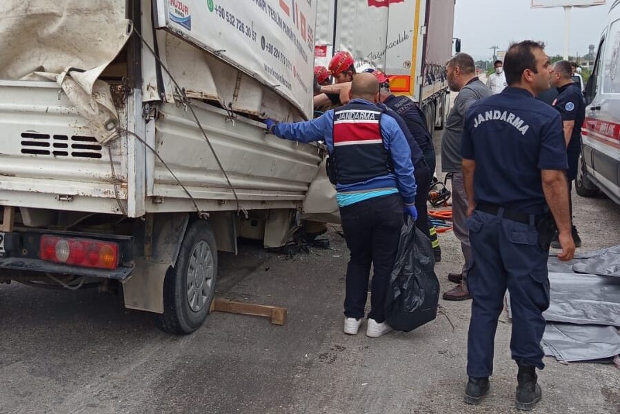 Kaza, saat 17.00 sıralarında Uluabat Mahallesinde meydana geldi. Mehmet İraz (42) yönetimindeki 35 KRB 42 plakalı kamyonet, sürücüsünün direksiyon kontrolünü yitirmesi sonucu yol kenarında park halinde bulunan 10 UC 145 plakalı çekici ve 10 AJS 968 plakalı römorka arkadan çarptı. Çevredekilerin ihbarı üzerine kaza yerine itfaiye, jandarma, polis ve sağlık ekipleri sevk edildi. Sağlık ekiplerince yapılan kontrolde kamyonette sıkışan sürücü Mehmet İraz ve araçtaki Muhammet Rehvaninin (29) yaşamını yitirdiği belirlendi. İtfaiye ekiplerince kamyonetten çıkarılan 2 kişinin cansız bedeni, Karacabey Devlet Hastanesi’nin morguna götürüldü.