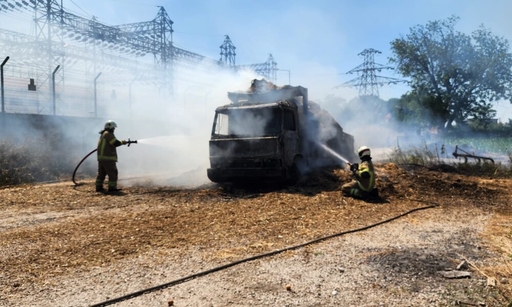 Mustafakemalpaşa ilçesine bağlı Tatkavak Mahallesinde bugün öğle saatlerinde saman yüklü kamyonda yangın çıktı. Üzerindeki fazla yük bir başka kamyona boşaltılmak isterken çıkan yangın kısa sürede büyüdü. İtfaiye ekiplerini müdahalesiyle yangın söndürülürken alevlerin arasında kalan kamyonlar ile 4 römork ve bölgede bulunan birçok tarım aleti kullanılamaz hale geldi.