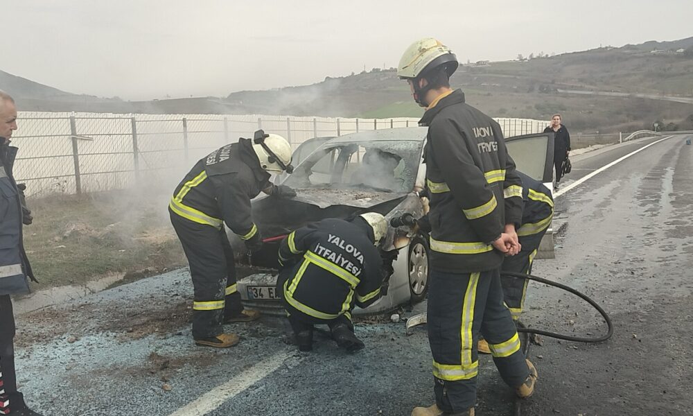 BURSA’da, seyir halindeyken alev alan otomobil, yangında kullanılamaz hale geldi.Yalova’dan Bursa yönüne giden sürücüsünün ismi belirlenemeyen 34 EA 52 47 plakalı otomobil, saat 09.30 sıralarında Orhangazi ilçesi Süpürgelik mevkisine geldiğinde motor kısmından dumanlar yükseldi. Sürücü aracı durdurup, yanındaki kadın ile birlikte indi. Otomobil kısa sürede alev topuna dönüşürken, ihbar üzerine gelen itfaiye ekiplerinin müdahalesiyle yangın söndürüldü. Otomobil kullanılamaz hale gelirken, sürücü ise uzun süre olayın etkisinden kurtulamadı. Yangınla ilgili inceleme başlatıldı.