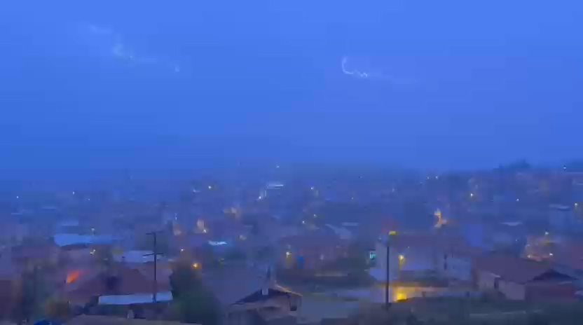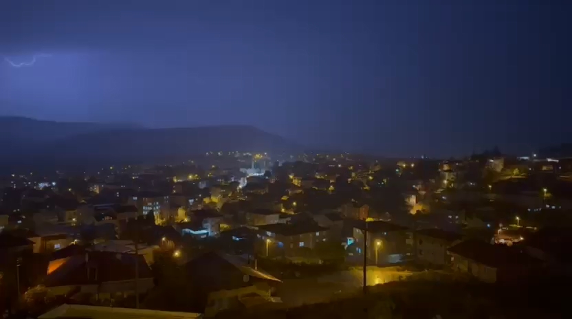 Bursa’nın Orhaneli ilçesinde akşam saatlerinde etkili olan sağanak yağışla birlikte gökyüzünü aydınlatan şimşekler, geceyi gündüze çevirdi. İlçede kısa sürede etkisini artıran sağanak yağışla birlikte gök gürültüsü aralıksız devam etti. Zaman zaman düşen yıldırımlar, ilçe merkezini aydınlatırken, bazı bölgelerde kısa süreli elektrik kesintileri yaşandı. Yetkililer, vatandaşları ani su baskınlarına karşı dikkatli olmaları konusunda uyardı.