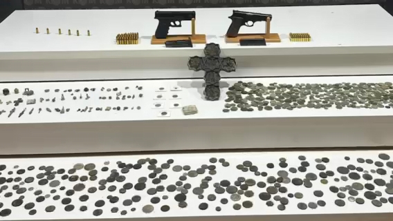 Bursa Emniyet Müdürlüğü Kaçakçılık ve Organize Suçlarla Mücadele Şube Müdürlüğü ekipleri, tarihi eser kaçakçılığını önlemeye yönelik çalışmalarını sürdürüyor. Çalışmalar kapsamında merkez Osmangazi ilçesindeki bir ev ve iş yerine eş zamanlı operasyon düzenlendi. Adreslerde yapılan aramalarda Roma, Bizans ve Osmanlı dönemlerine ait 774 sikke, 240 obje, 2 ruhsatsız tabanca, tabancalara ait 137 fişek ve 1 el telsizi ele geçirildi. Şüpheli C.E., gözaltına alındı.