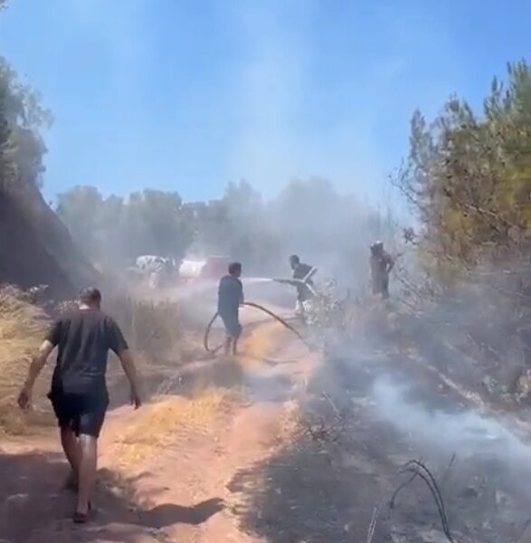 Bursa’da zeytinlik yangını ormana sıçramadan söndürüldü