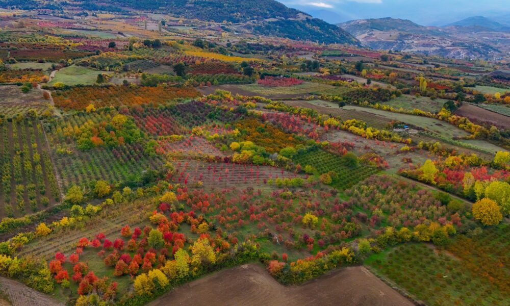 Bursa’daki meyve bahçeleri, sonbahar renklerine büründü