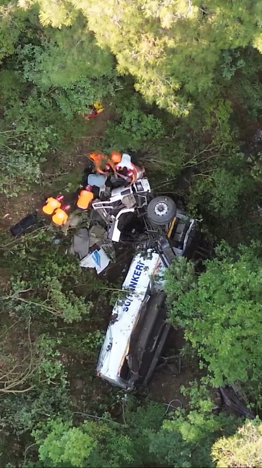 SU TANKERİ YAMAÇTAN DÜŞTÜ; 1 ÖLÜ, 2 YARALI