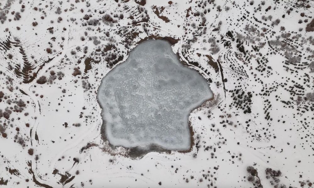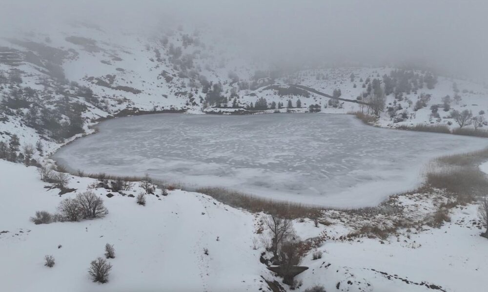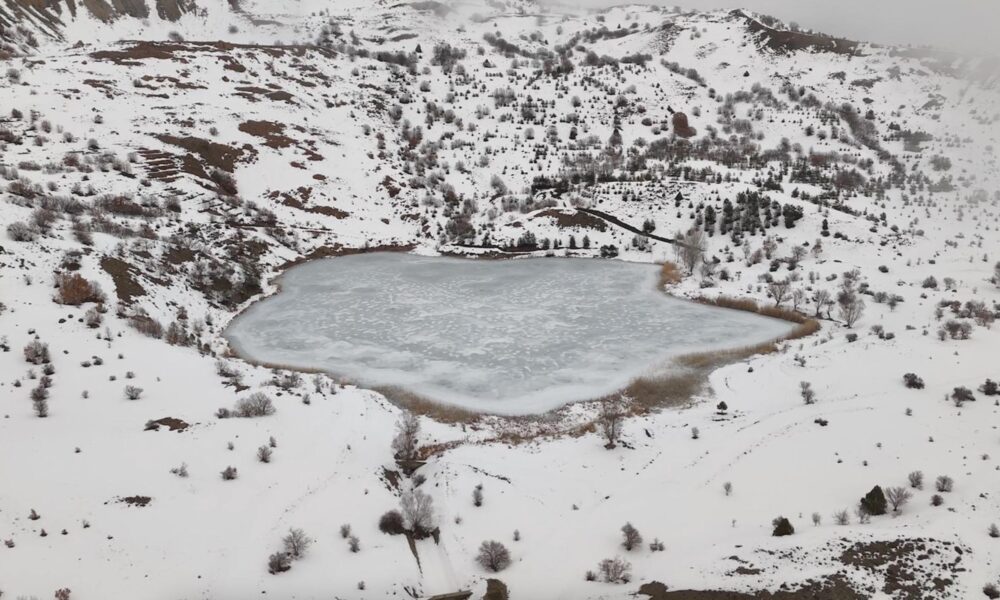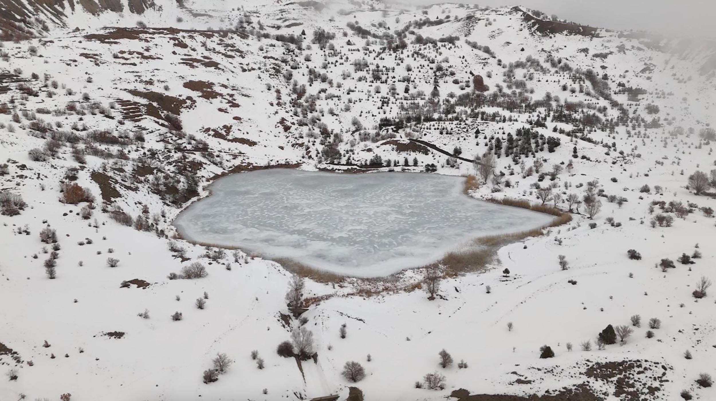 Buz tutan Ardos Gölü dronla görüntülendi