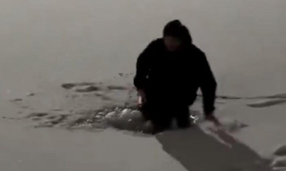 Buz tutan göletin üzerinde dans ederken suya düştü
