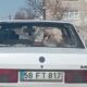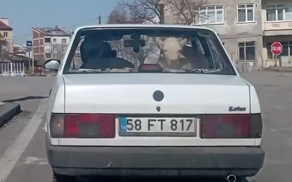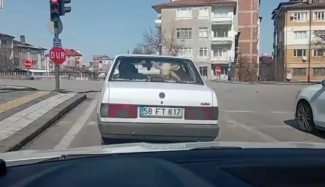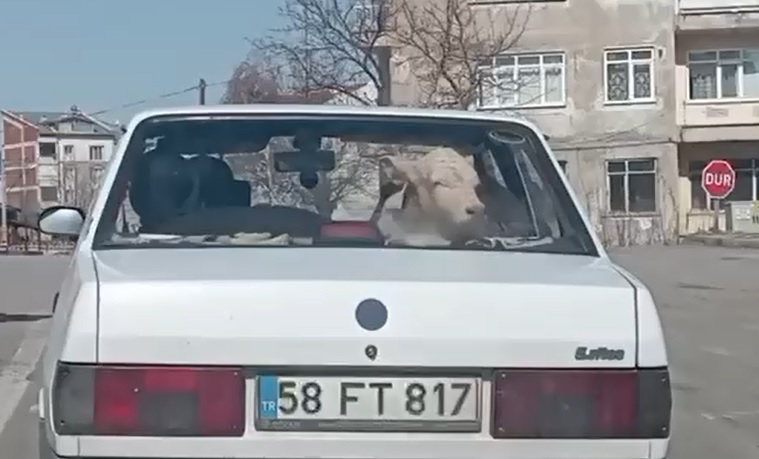 Kent merkezinde trafikte seyir halindeki bir otomobilin arka kısmında taşınan buzağıyı görenler, o anları, cep telefonuyla görüntüledi. Görüntülerde, bir kişinin, hasta olduğu için köyden veterinere getirildiği öğrenilen buzağının başını okşadığı görüldü.
