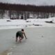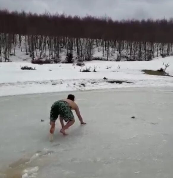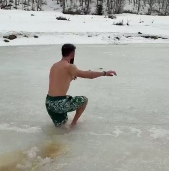 Buzu kırıp göle girdi