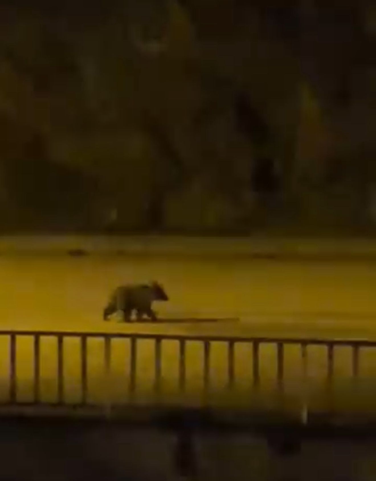 • Karabük'ün Yenice ilçesinde caddede koşan yavru bozayı, cep telefonuyla görüntülendi. Fotoğraf: Yenice (Karabük),(DHA)