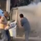 Çalkaladığı gazlı içecekle yangını söndürmeye çalıştı