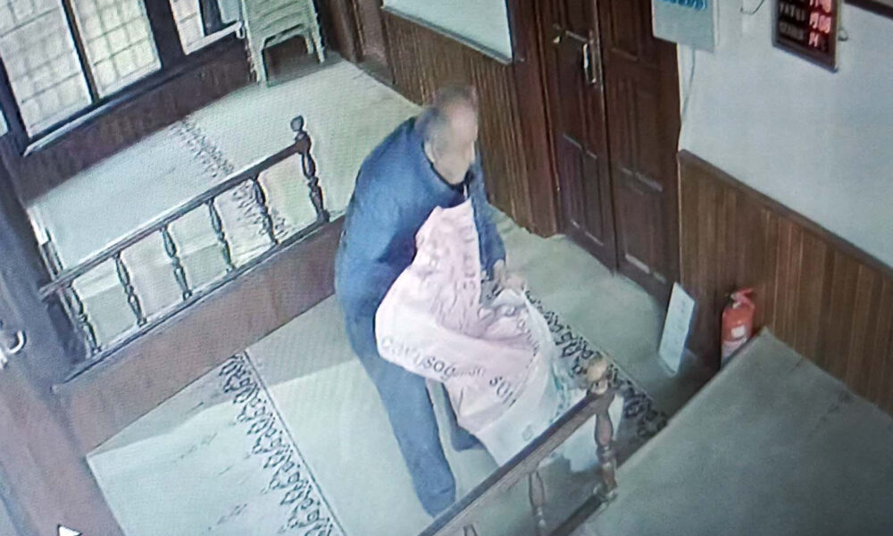 Cami görevlisi Mikail Aydın, ikindi namazı için geldiğinde sadaka kutusunun yerinde olmadığını fark edince kamera kayıtlarını inceledi. Kamera kayıtlarında şüphelinin camiye girdiğini, kimsenin olmadığını görünce de çıkıp tekrar elinde çuvalla geri dönüp sadaka kutusunu aldığı anlar yer aldı.
