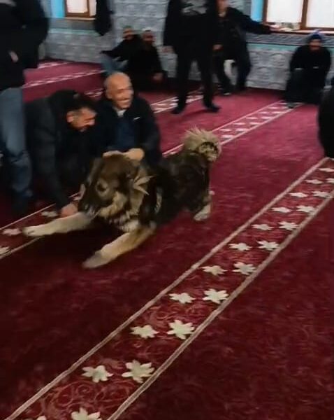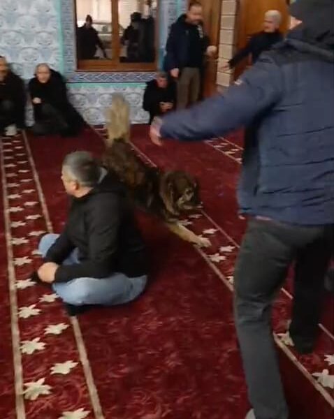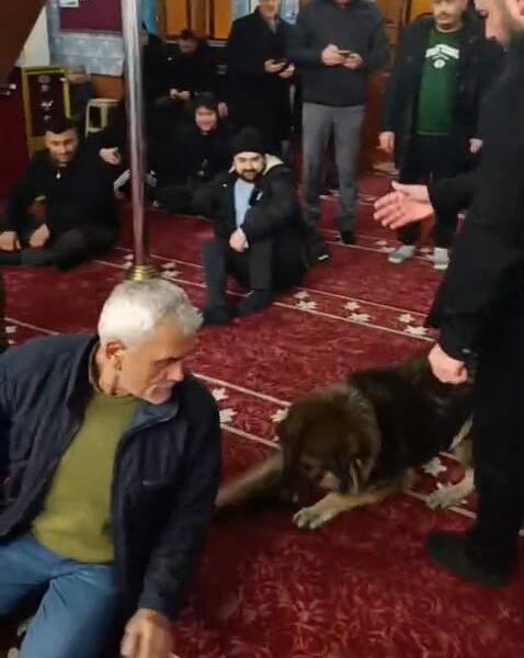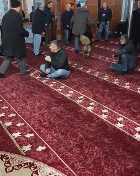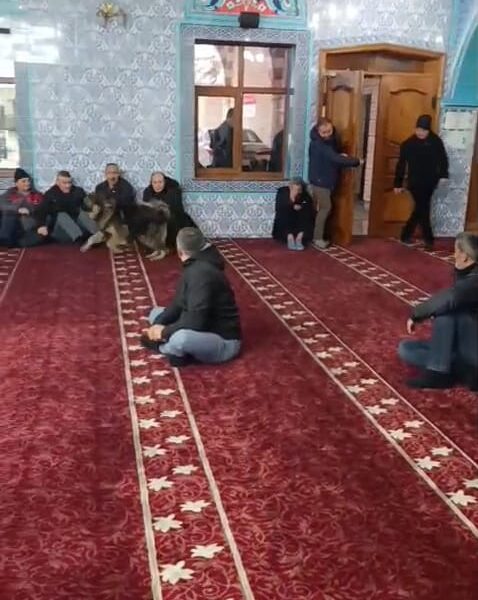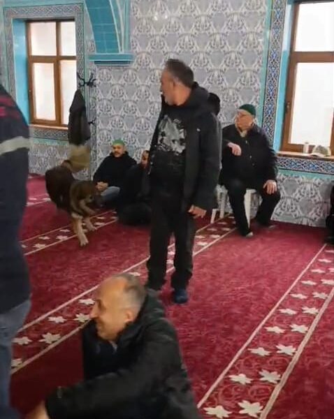 Camiye giren sokak köpeği, cemaatin arasında dolaştı