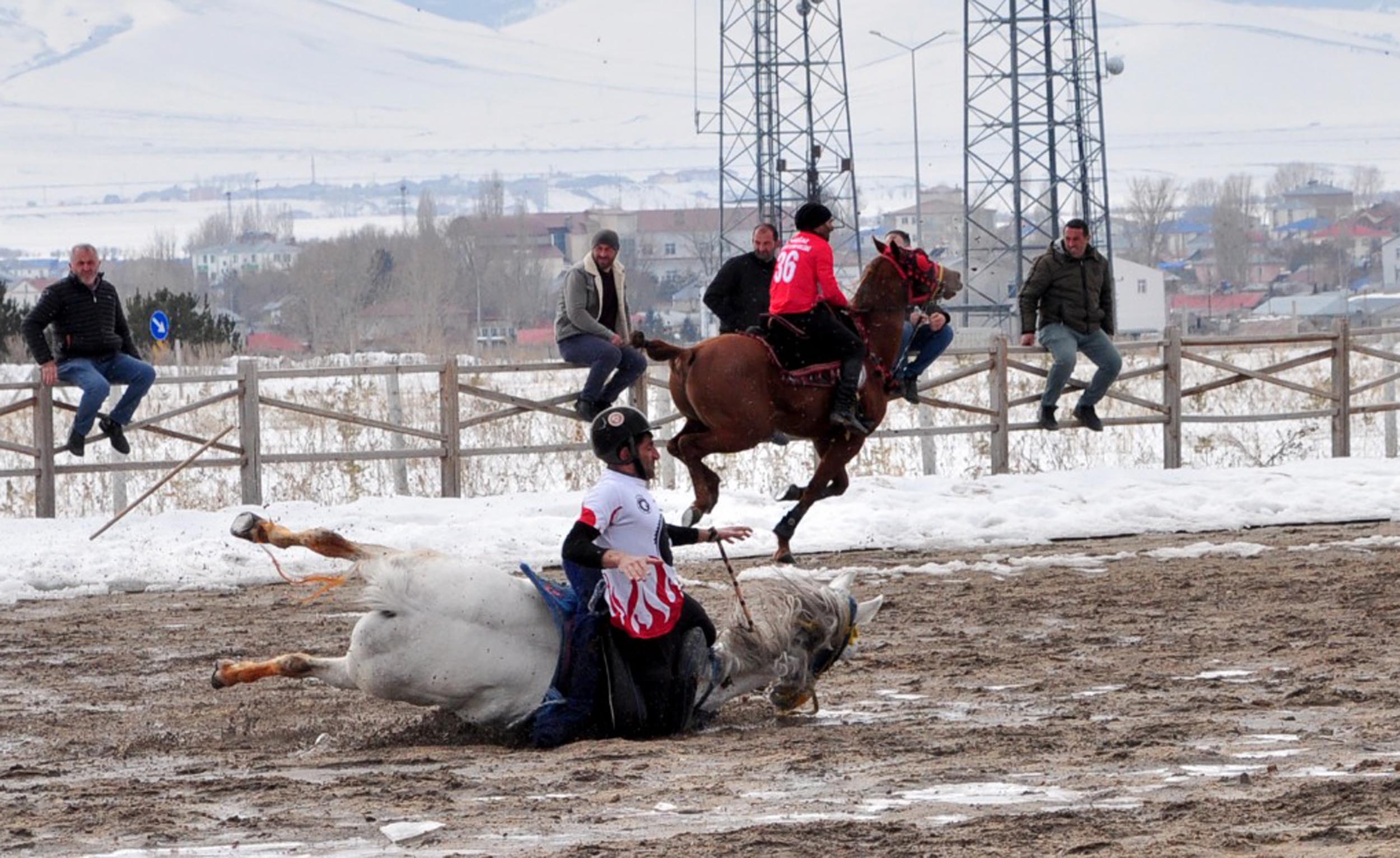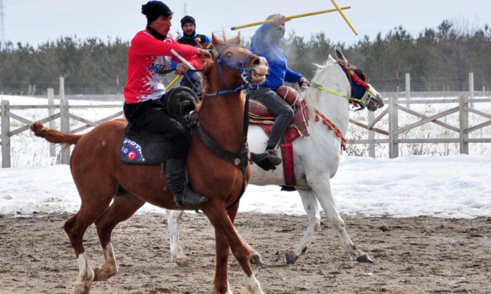 Kars’ın geleneksel kültüründe önemli yer tutan atlı cirit için kulüpler bir araya geldi. Başköy Allahuekber Dağı Atlı Spor Kulübü ile Darboğaz Atlı Spor Kulübü, havanın ısınmasıyla çamura dönen sahada karşılaştı. Kafkas Atlı Spor Kulübü’nün de destek verdiği gösteri maçında, vatandaşlar tribünü doldurdu. Kar yağışının ardından sabah saatlerinde güneşin çamura çevirdiği ve kayganlaşan zeminde at süren ciritçiler, zaman zaman zor anlar yaşadı. Sporcular, hem rakiplerinden gelen cirit sopalarından korunmaya hem de atlarını dengede tutmaya çalıştı. Bazı anlarda atların çamura saplanması, müsabakanın zorluk derecesini gözler önüne serdi.