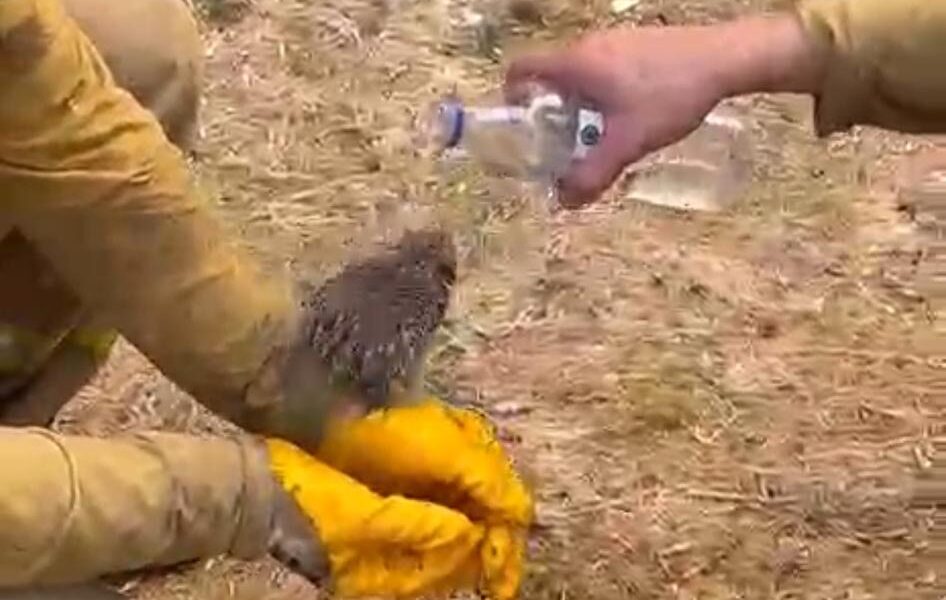 YANGINDAN KURTARILAN KİRPİYE ORMAN İŞÇİLERİ SU İÇİRDİ