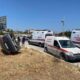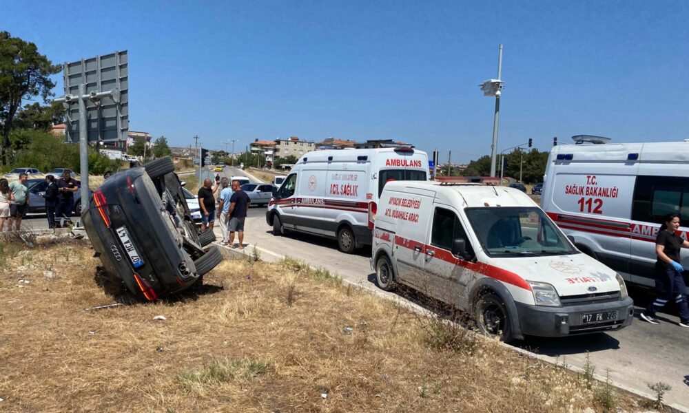 • Çanakkale'nin Ayvacık ilçesinde motosikletle çarpışan otomobilin takla attığı kazada, 1'i ağır 2 kişi yaralandı. Fotoğraf: Ayvacık (Çanakkale),(DHA)
