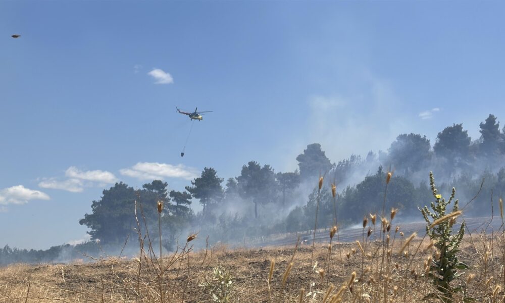 • Çanakkale'de tarım arazisinde çıkan yangın, ormana sıçradı. Bölgeye sevk edilen ekipler, yangına havadan ve karadan müdahale ediyor. Fotoğraf:Çanakkale,(DHA)