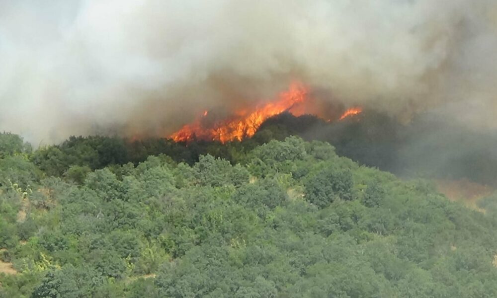 Çanakkale'nin Bayramiç ilçesinde orman yangýný çýktý. Alevlere havadan karadan müdahale ediyor.Fotoðraf:Fatih DALDAL / Bayramiç (Çanakkale),(DHA)