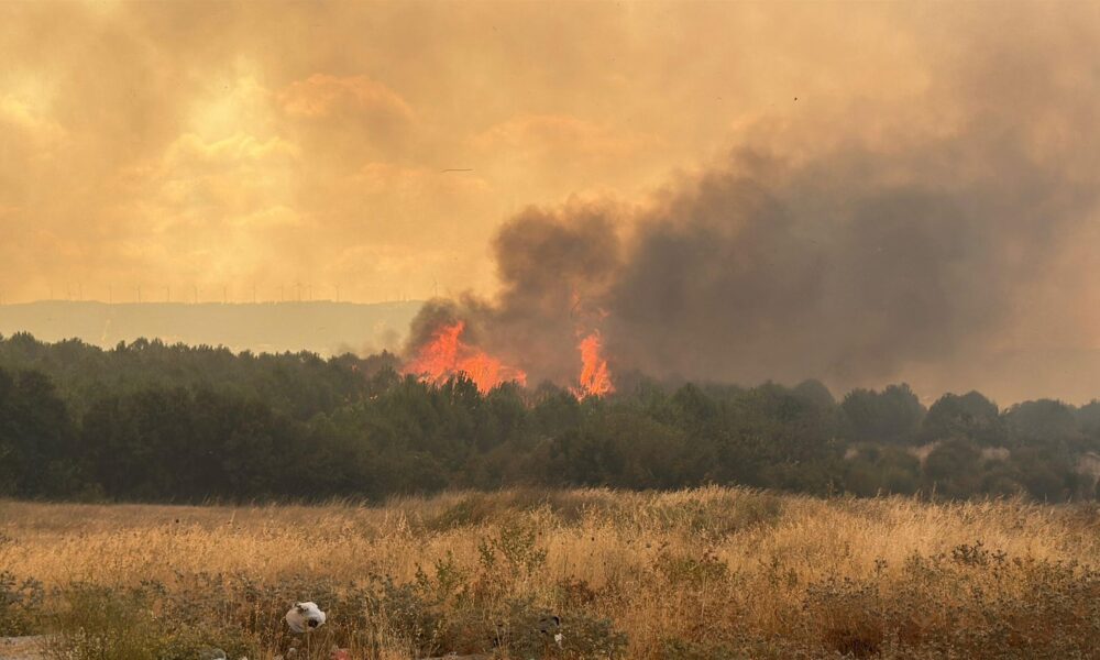 Çanakkale'de orman yangını çıktı. Alevler havadan ve karadan müdahale ediliyor. Fotoğraf: Çanakkale,(DHA)