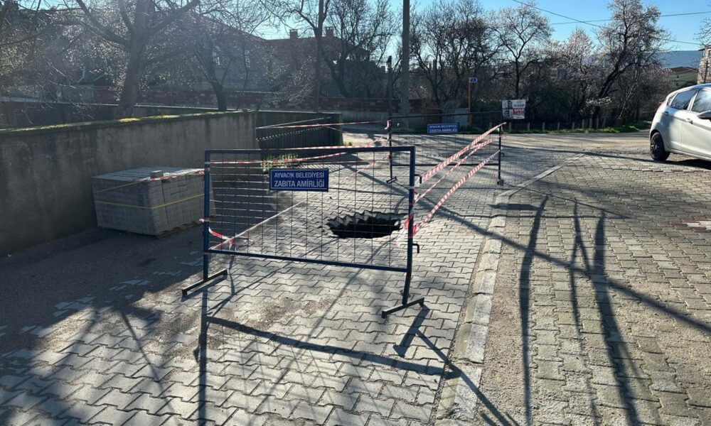 Ayvacık ilçesinde son günlerde sağanak etkili oldu. Hamdibey Mahallesinde biriken suyun etkisiyle yolun bir bölümünde çökme oluştu. Çökme nedeniyle yaklaşık 2 metre derinliğinde çukur oluşurken, ihbarla bölgeye belediye ekipleri sevk edildi. Ekipler tarafından güvenlik önlemi alınırken, çöken alan şerit ve bariyerlerle çevrilerek kapatıldı. Çöken alanda onarım çalışması başlatılacağı bildirildi.