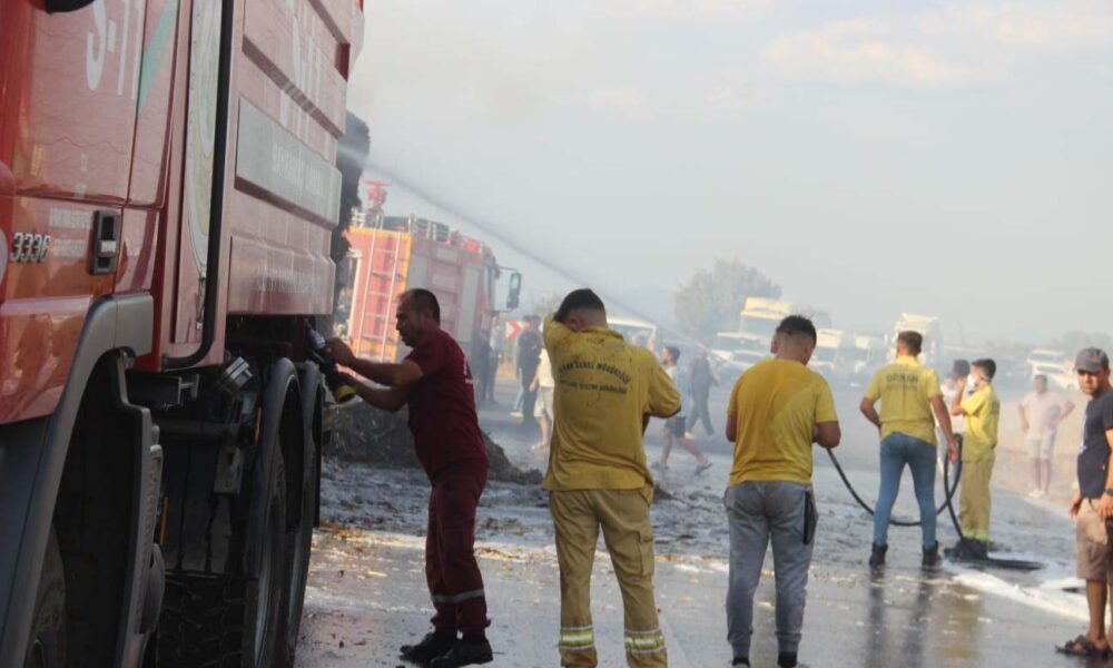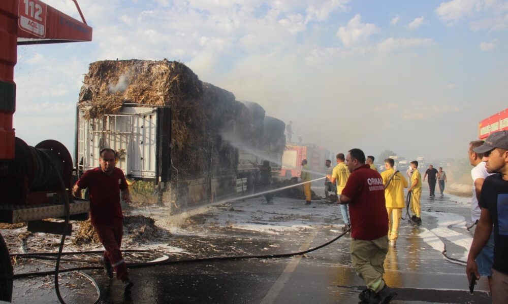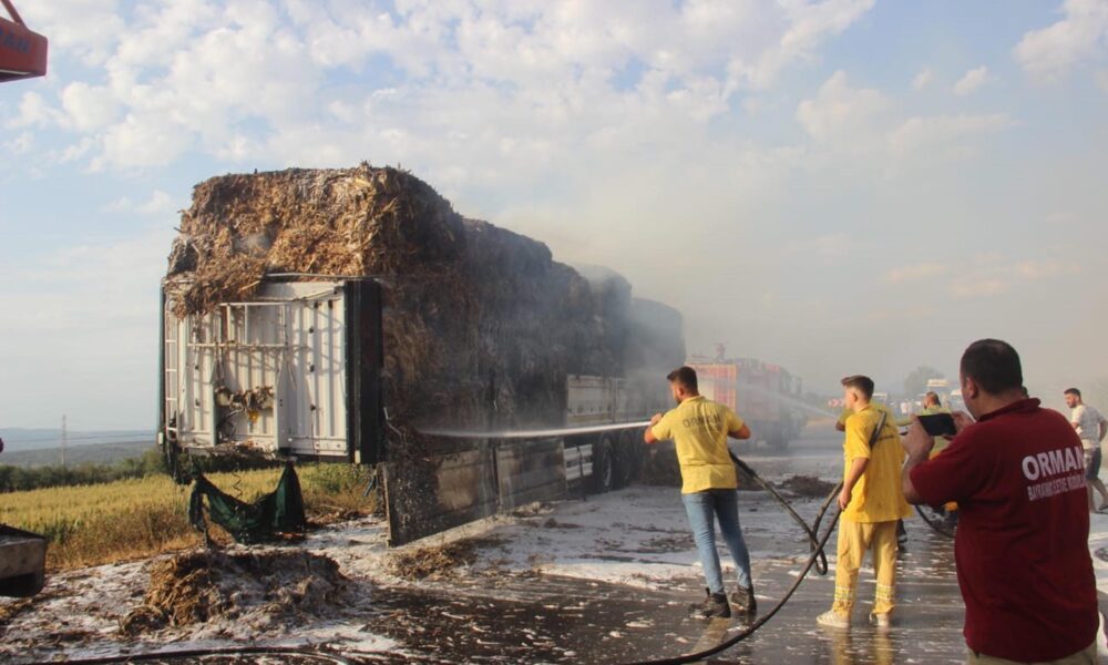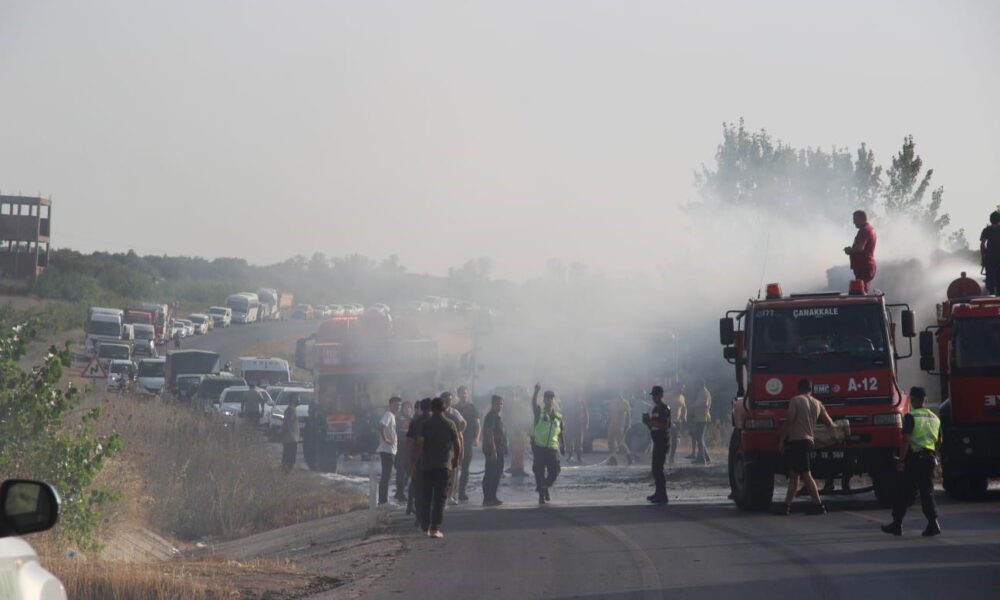 Çanakkale’de saman yüklü TIR’ın dorsesi alev aldı