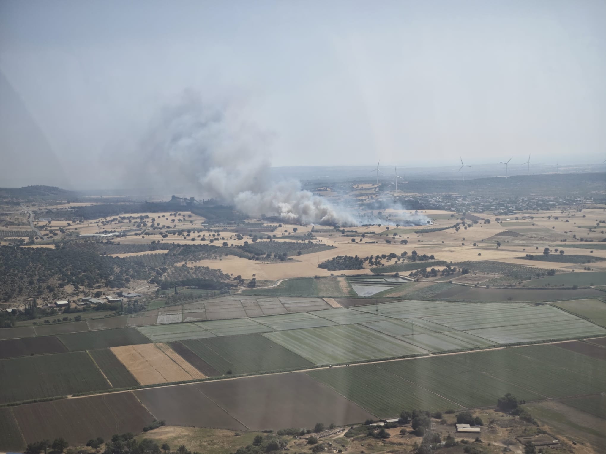 Yangın, saat 15.30 sıralarında Ezine ilçesine bağlı Mahmudiye köyü yakınlarında tarım arazisinde çıktı. Yangın rüzgarın da etkisiyle geniş bir alana yayıldı. İhbar üzerine bölgeye 4 uçak, 1 helikopter, 2 ilk müdahale aracı, toplam 12 su ikmal aracı ve arazöz, 2 dozer, 2 treyler, 2 belediye itfaiyesi ve toplam 90 personel sevk edildi. Yangın havadan ve karadan yapılan müdahalenin ardından saat 16.30 sıralarında kontrol altına alındı. Yangında 4,2 hektarlık tarım arazisi zarar gördü. Bölgede soğutma çalışmaları sürdürülüyor.