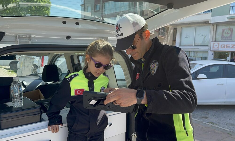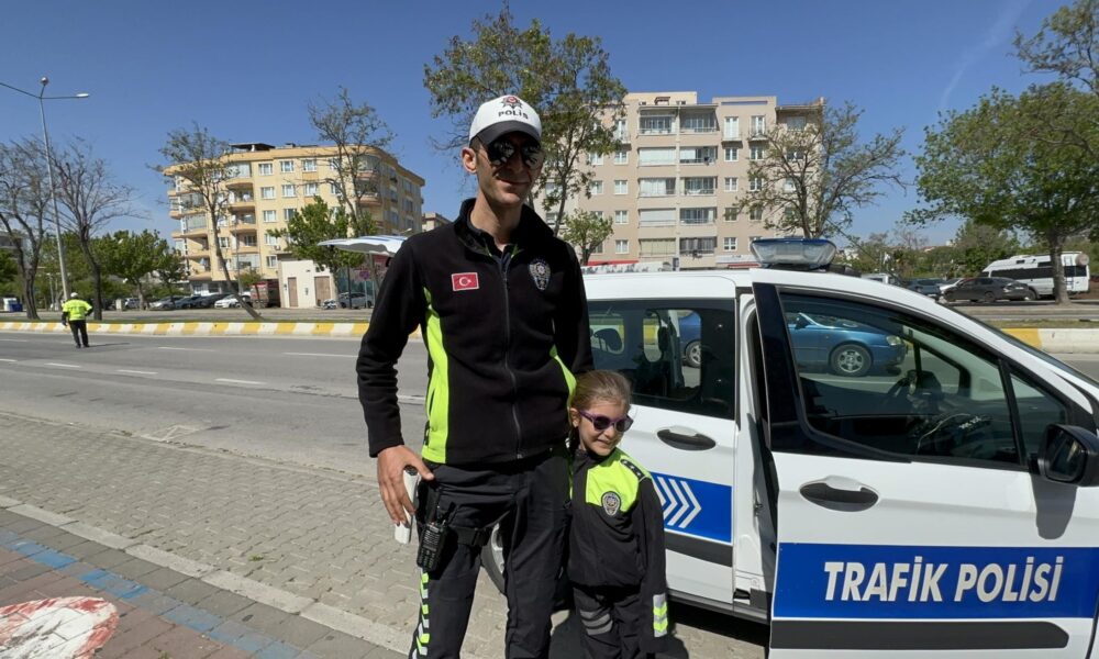 Çanakkale’de trafik polisi baba, kızıyla trafik denetimi yaptı