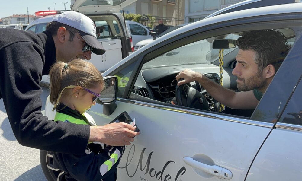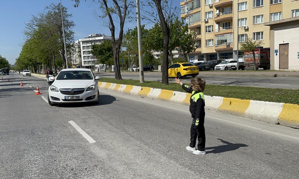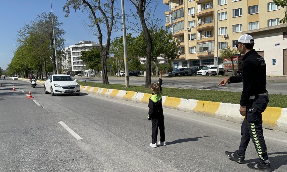 Bugün trafik uygulaması yaptıklarını söyleyen Asya Umay Yıldırım, “Burada hızlı giden araçları kontrol edeceğiz. Motosikletlerin kaskını takmasını istiyoruz. Araç sürücülerinin telefonla konuşmaması, bütün odağının yolda olmasını istiyoruz. Emniyet kemerimizi arabaya bindiğinde takmamız lazım. Gazi Mustafa Kemal Atatürk’ün bize emanet ettiği bu bayram tüm çocuklara kutlu olsun. Bizler bugünün küçükleriyiz, yarının büyükleriyiz” dedi.
