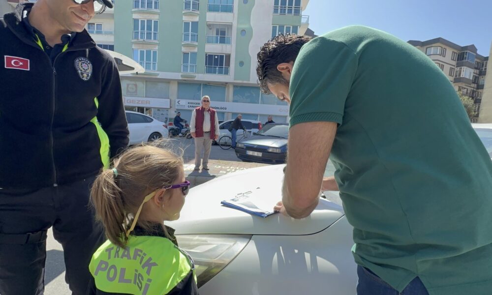 Çanakkalede 23 Nisan Ulusal Egemenlik ve Çocuk Bayramı çeşitli etkinliklerle kutlanacak. Bu kapsamda, trafik polisi Tahir Yıldırım, kızı Asya Umay Yıldırım ile Troya Caddesi’nde trafik denetimi gerçekleştirdi. Asya Umay Yıldırım, araçları durdurarak hız, emniyet kemeri gibi uygulamaları denetledi. Yıldırım, denetim sırasında bir sürücünün 65 kilometreyle hız sınırını geçmesi sonucu ceza kesti.