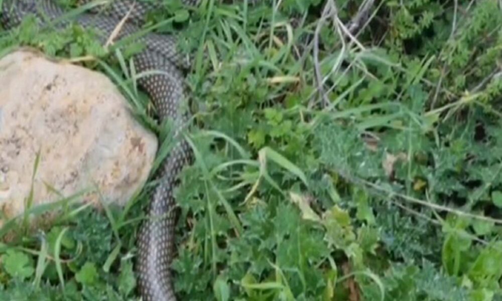 Çanakkale’de yaklaşık 2 metrelik yılan cep telefonu kamerasıyla görüntülendi