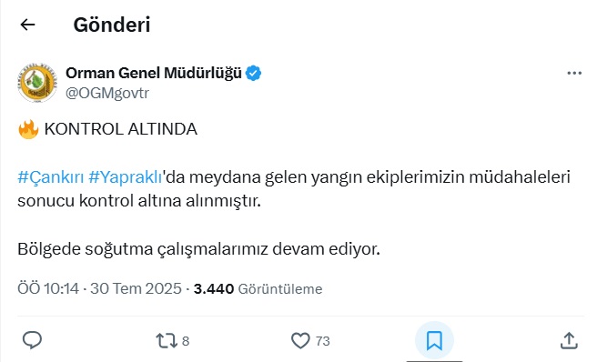 OGMnin sosyal medya hesabından yapılan açıklamada, “Çankırı Yapraklıda da meydana gelen yangın ekiplerimizin müdahaleleri sonucu kontrol altına alınmıştır. Bölgede soğutma çalışmalarımız devam ediyor” denildi.