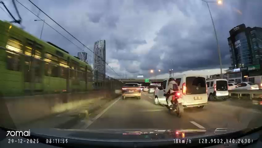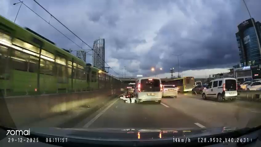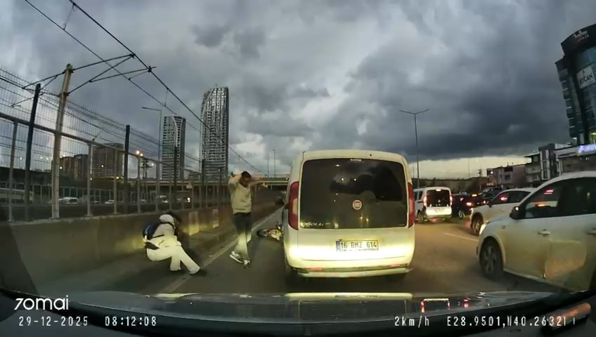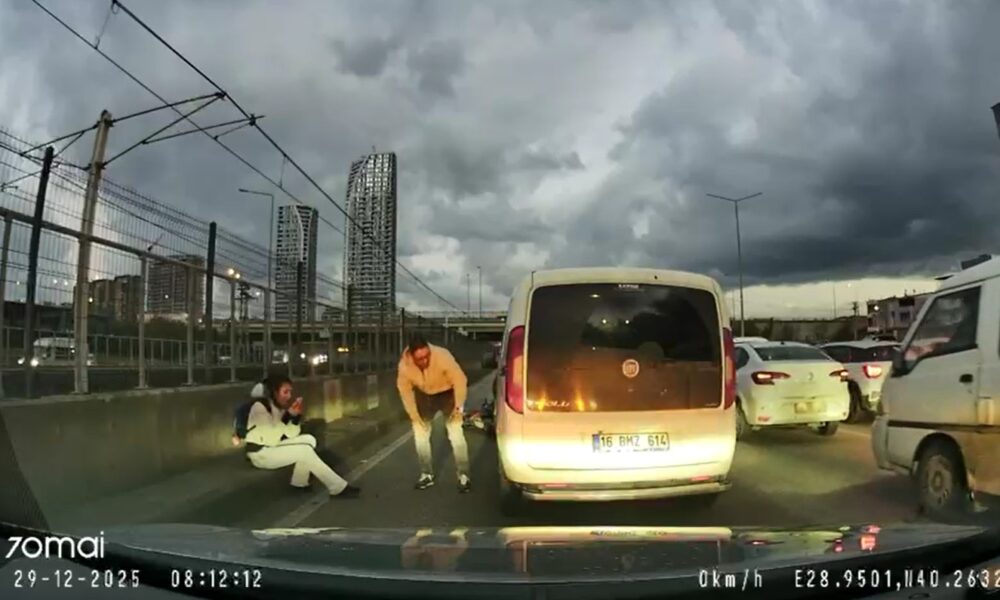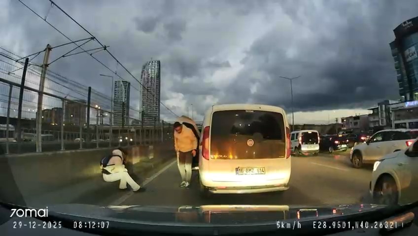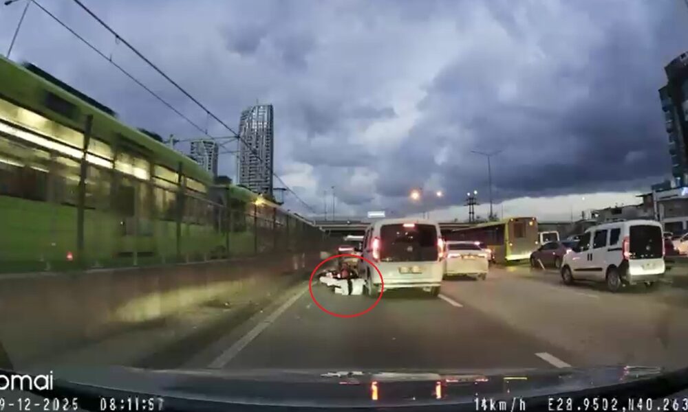 Kaza, 29 Aralıkta saat 08.00 sıralarında Nilüfer ilçesi Geçit Mahallesi Mudanya Yolunda meydana geldi. Sinyal vermeden şerit değiştiren sürücünün kullandığı 16 BMZ 614 plakalı hafif ticari araç, sol şeritte ilerleyen motosiklete çarptı. Savrulup metro hattı duvarına çarpan motosikletten düşen kadın sürücü, aracın arka tekerinin altında kalmaktan son anda kurtuldu. Kazanın ardından araçtan inen sürücü, yaralı motosikletliye yardım etmek yerine aracını kontrol etti. O anlar, başka bir otomobilin araç kamerasına yansıdı.