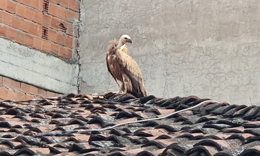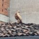 Çatıya konan akbabayı görüntülemek için yarıştılar