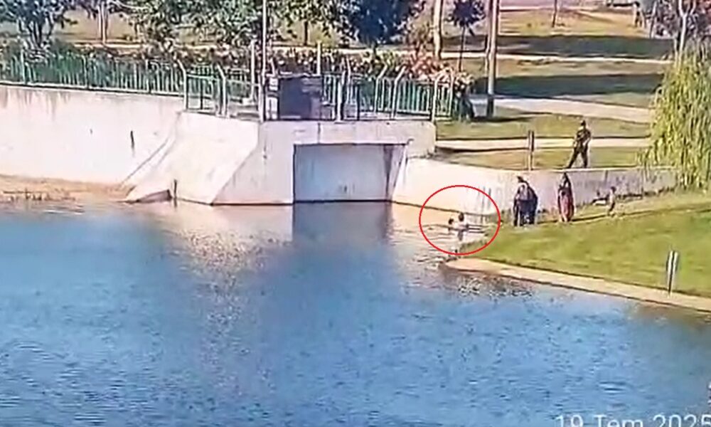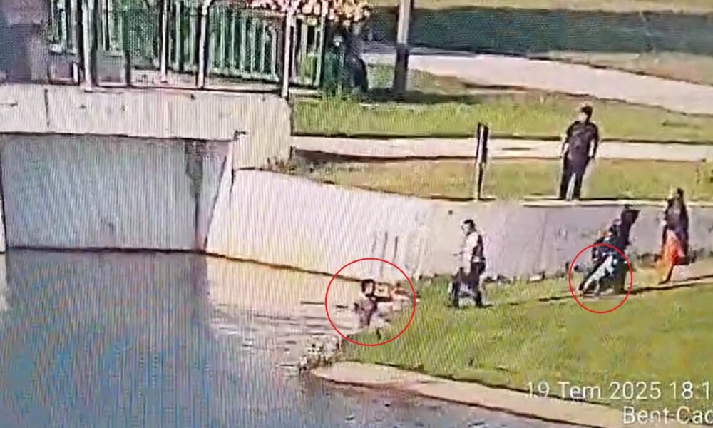 Çaya düşen 1,5 yaşındaki bebeği, parktaki güvenlik görevlisi kurtardı; o anlar kamerada