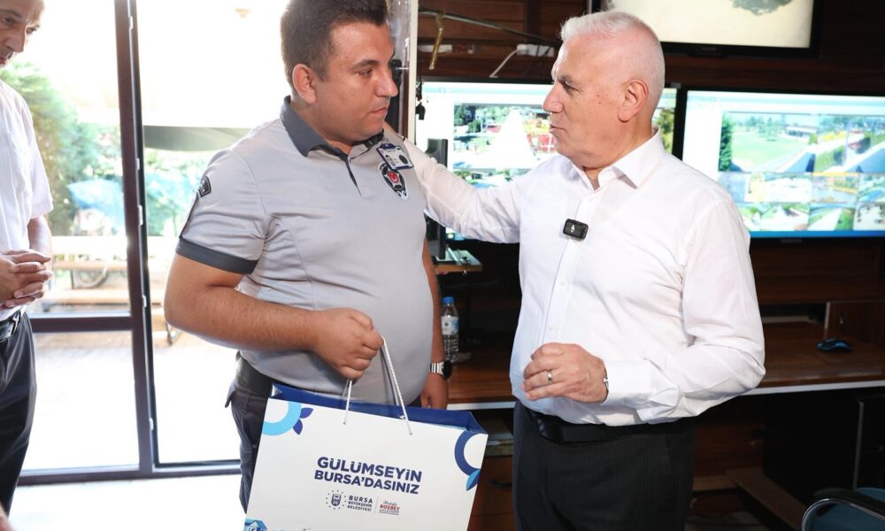Bursa Büyükşehir Belediye Başkanı Başkan Mustafa Bozbey, güvenlik personelini görev yerinde ziyaret ederek tebrik etti. Furkan Mercan’ı cesaretinden ve özverisinden dolayı kutlayan Bozbey, “Dün Hüdavendigar Kent Parkı’nda 1,5 yaşındaki bir evladımızın suya düşmesi, hepimizin yüreğini ağzına getirdi. Olay anında görevini büyük bir sorumlulukla yerine getirerek, çocuğumuzu kurtaran güvenlik görevlimiz Furkan Mercan’a yürekten teşekkür ediyorum. Böylesi üzücü olayların tekrar yaşanmaması adına, hem vatandaşlarımızdan hem de personelimizden daha dikkatli ve duyarlı olmalarını önemle rica ediyorum” dedi.