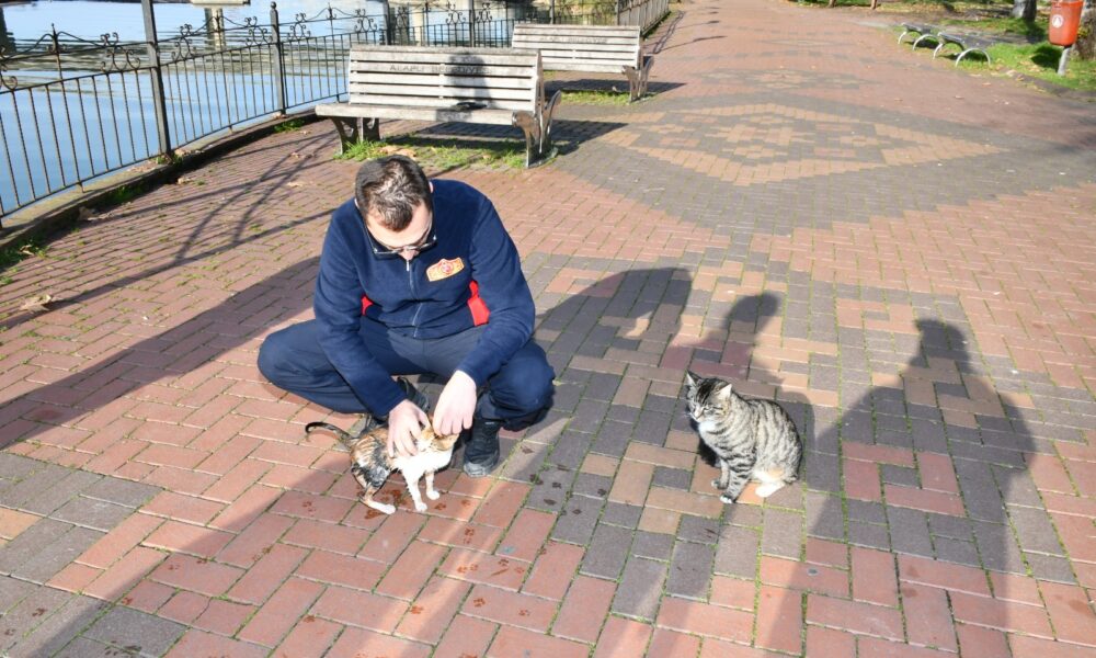 Olay, sabah saatlerinde Alaplı ilçesinde Atatürk Parkında meydana geldi. Bir yavru kedi, korkuluklardan Alaplı Çayına düştü. Kedi, sudan çıkıp beton korkuluğa tutundu. Bu sırada anne kedi miyavlarken, çevredekiler durumu fark edip bölgeye geldi. İhbarla bölgeye itfaiye ekibi sevk edildi. İtfaiye ekibi, çayın kenarında mahsur kalan yavru kediyi kurtardı. Temizlenip, kurutulan yavru kedi daha sonra annesinin yanına bırakıldı.