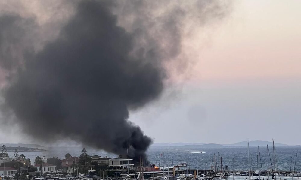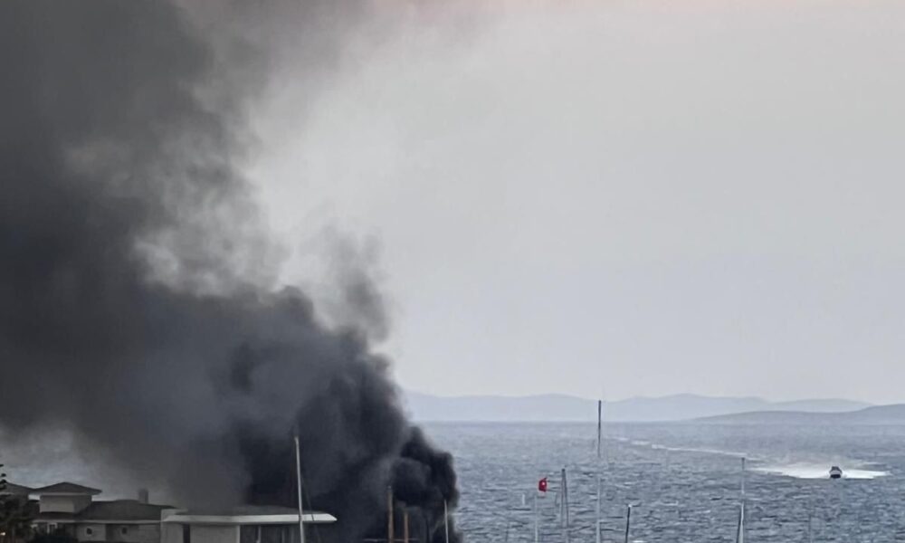 Çeşme’de demirli teknede çıkan yangın korkuttu