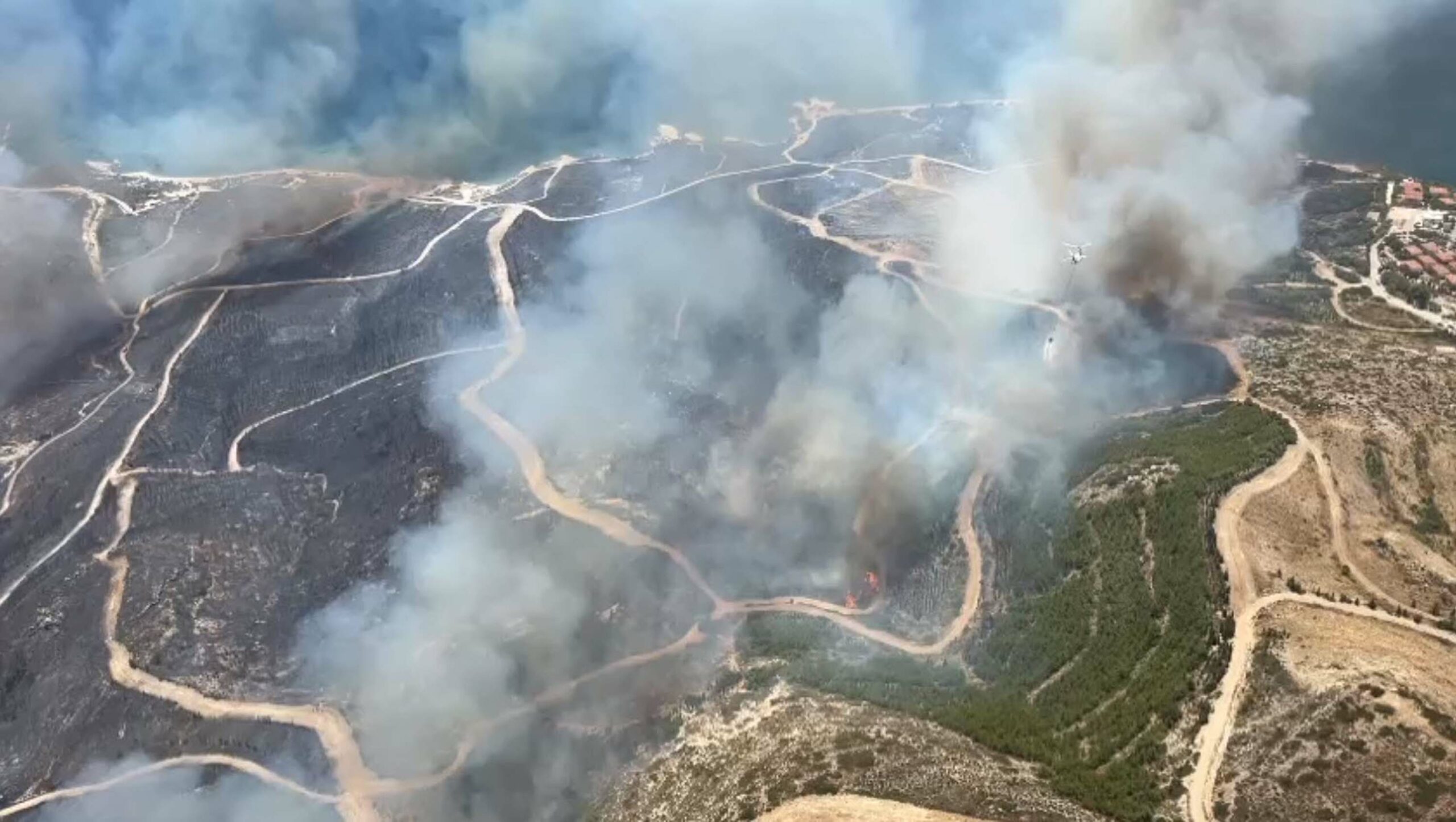 Ýzmir'in Çeþme ilçesinde orman yangýný çýktý. Alevlere havadan ve karadan müdahale ediliyor.Fotoðraf:Çeþme (izmir),(DHA)