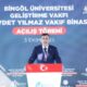Cumhurbaşkanı Yardımcısı Cevdet Yılmaz, bir dizi açılış ve ziyaretlerde bulunmak üzere memleketi Bingöle geldi. Bingöl Havalimanında kent protokolü tarafından karşılanan Yılmaz, tören mangasını selamladı. Daha sonra Bingöl Üniversitesinde 26 Ekim 2024’te temeli atılan Bingöl Üniversitesi Geliştirme Vakfı Cevdet Yılmaz Vakıf Binasının açılış törenine katıldı. Törene ayrıca Vali Ahmet Hamdi Usta, AK Parti milletvekilleri Fevzi Berdibek ve Zeki Korkutata, Belediye Başkanı Erdal Arıkan, YÖK Denetleme Kurulu üyesi ve Bingöl Üniversitesi Geliştirme Vakfı Mütevelli Heyeti Başkanı Prof. Dr. İbrahim Çapak ile davetliler yer aldı. Cevdet Yılmaz, daha sonra Recep Tayyip Erdoğan Kongre Merkezinde düzenlenen Bingöl Üniversitesi 2025-2026 Akademik Yılı İlk Dersi programına katıldı.