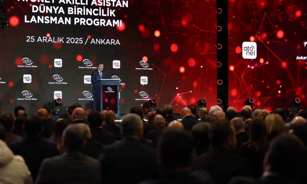 Ankara Ticaret Odası tarafından düzenlenen ATONET Akıllı Asistan Dünya Birinciliği Lansman Programı ATO Congresiumda gerçekleştirildi. Programa, Cumhurbaşkanı Yardımcısı Cevdet Yılmaz, ATO Başkanı Gürsel Baran, TOBB Başkanı Rifat Hisarcıklıoğlu ve sektör temsilcileri katıldı. Burada konuşan Yılmaz, “Dijitalleşme ve yapay zekâ, günümüzde ekonomik büyüklükleri, rekabet gücünü ve devletlerin hareket alanını yeniden tanımlayan temel unsurlar hâline gelmiştir. Üretimden ticarete, kamu yönetiminden küresel değer zincirlerine kadar uzanan bu dönüşüm; ülkelerin bugünkü performansının yanında gelecekte hangi ligde yer alacağını da belirlemektedir. Türkiye, bu dönüşümü doğru okuyan ve dijitalleşme ile yapay zekâyı kalkınma stratejisinin merkezine yerleştiren bütüncül bir yaklaşımı kararlılıkla hayata geçirmektedir. Küresel ekonomide korumacılık duvarlarının yükseldiği, tarife savaşlarının rotaları değiştirdiği bir dönemde Türkiye; üretim kabiliyetini teknolojiyle derinleştiren ve verimlilikle güçlendiren bir kalkınma anlayışıyla yoluna devam etmektedir. Bu yaklaşımın somut sonucu olarak, verimlilik ve ihracat odaklı duruşuyla ülkemiz tam 21 çeyrektir kesintisiz büyümekte; belirsizliklerin arttığı küresel tabloda ekonomik direncini net biçimde ortaya koymaktadır” dedi.