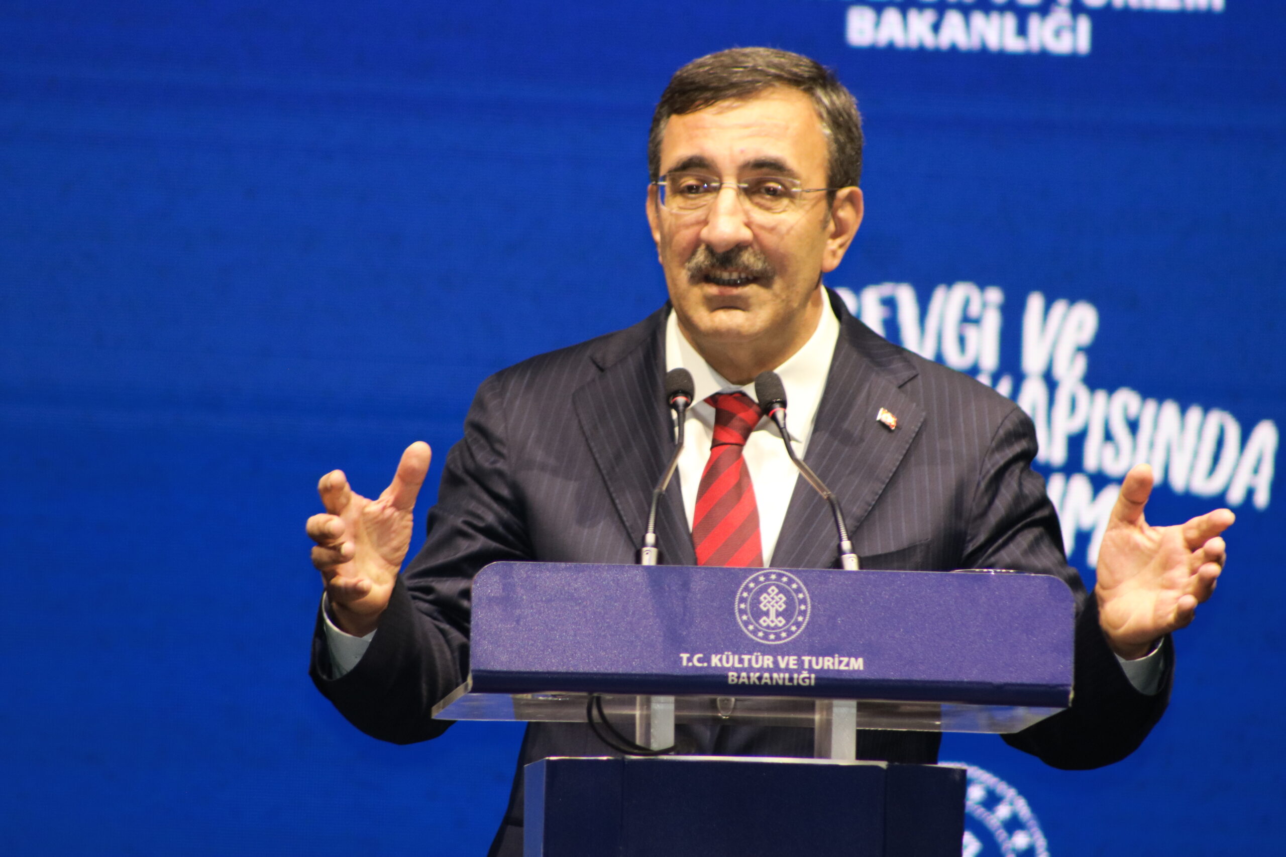 Etkinlikte konuşan ve insanlığın zor bir süreçten geçtiğine vurgu yapan Kültür ve Turizm Bakanı Mehmet Nuri Ersoy ise “Hepimiz üzülerek şahit oluyoruz. Dünyanın dört bir yanında yaşanan işgaller ve çatışmalar nedeniyle milyonlarca insan yurdunu terk etmek zorunda kalıyor. Kadınlar, çocuklar, yaşlılar bu saldırılarda hedef alınıyor. Bebekler gıdasızlıktan hayatını kaybediyor. Evler bombalanıyor. Hastaneler, ibadethaneler yerle bir ediliyor. İnsanlar, inançları, düşünceleri nedeniyle ayrımcılığa uğruyor. Maalesef gözümüzün önünde insanlık tarihinin en acı olayları yaşanıyor” diye konuştu.