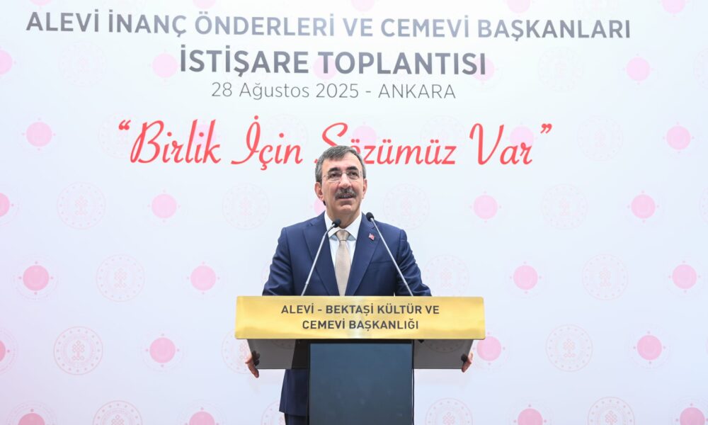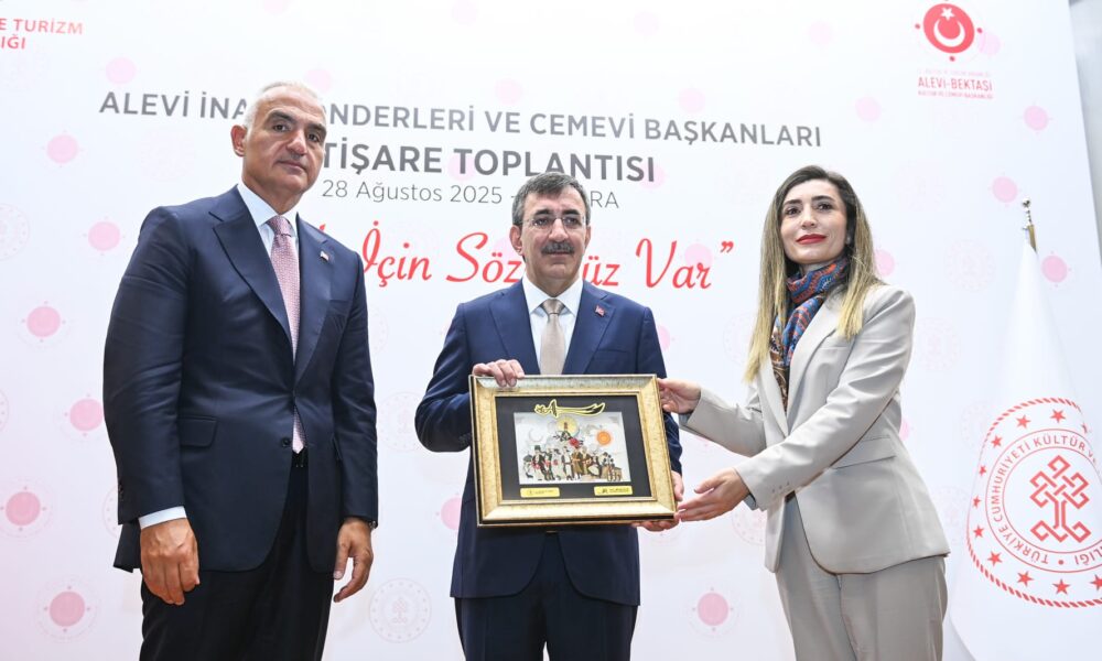 Cumhurbaşkanı Yardımcısı Cevdet Yılmaz ile Kültür ve Turizm Bakanı Mehmet Nuri Ersoy, Alevi-Bektaşi Kültür ve Cemevi Başkanlığında düzenlenen Alevi İnanç Önderleri ve Cemevi Başkanları İstişare Toplantısına katıldı. Alevi-Bektaşi Kültür ve Cemevi Başkanı Esma Ersin ile alevi dedeleri ve ziyaretçilerin yer aldığı toplantıda konuşan Yılmaz, istişare kültürünün hem gelenek hem de yönetim anlayışı açısından Türkiyenin temel referansı olduğunu vurguladı. Cumhurbaşkanı Recep Tayyip Erdoğanın liderliğinde her kararda ortak aklı esas aldıklarını belirten Yılmaz, “23 yıldır kararlarımızı Anadolunun her bir köşesinden, toplumun tüm kesimlerinden gelen milletimizin sesine kulak vererek şekillendiriyoruz. Doğu batı, etnik köken ve inanç ayrımı yapmadan, gölgesinde cem olduğumuz şanlı bayrağımızın dalgalandığı her yerde, 86 milyon vatandaşımız için çalışıyoruz” diye konuştu.