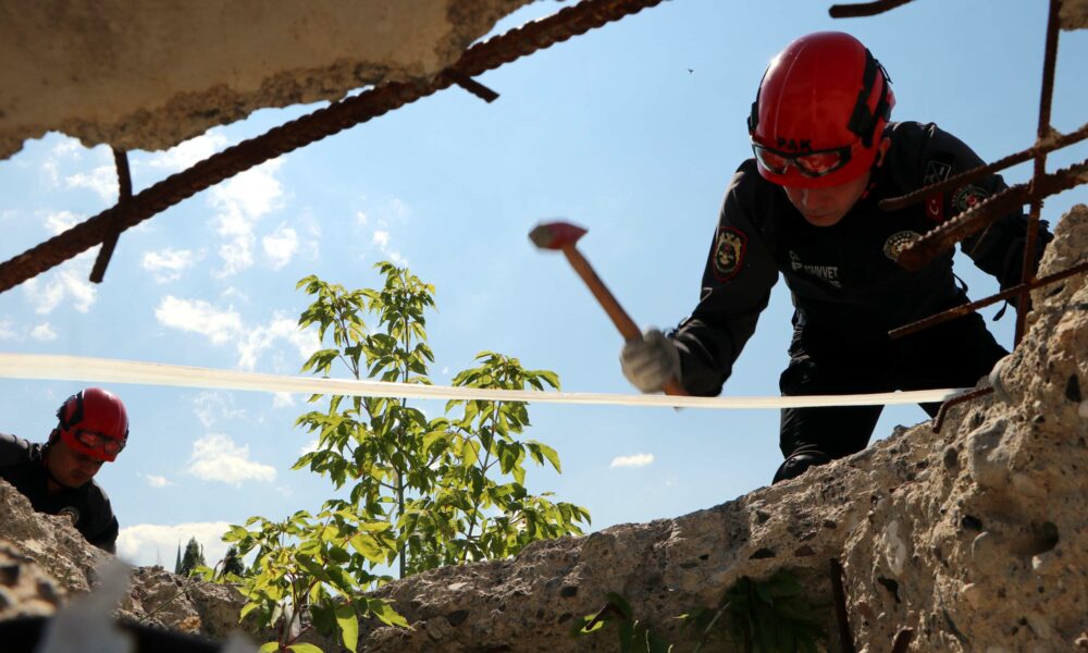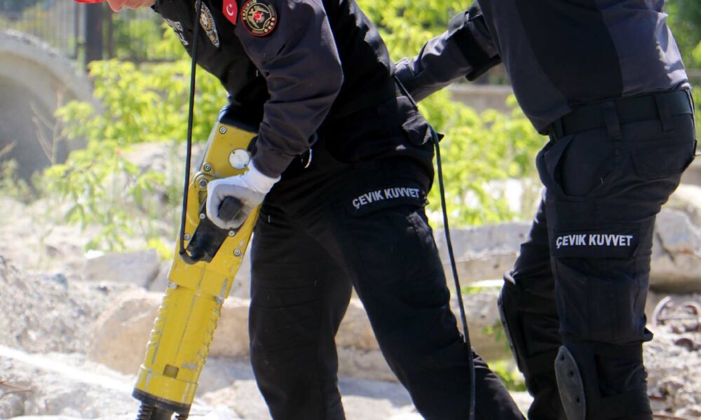 Erzurum merkezde görev yapan çevik kuvvet polisleri, bir taraftan görevlerini yaparken bir taraftan da gönüllü olarak katıldıkları Polis Arama Kurtarma (PAK) timinde eğitimlerini sürdürüyor. Polisler, hava sıcaklığının 30 dereceyi bulduğu kentte eğitmenlerin söylediklerini harfiyen yerine getirerek özveriyle çalışıyor. Gönüllü polisler, eğitim alanındaki ağır ekipmanları kaldırıp, tünel işçisi gibi enkaz alanındaki betonları keserek parçalıyor.