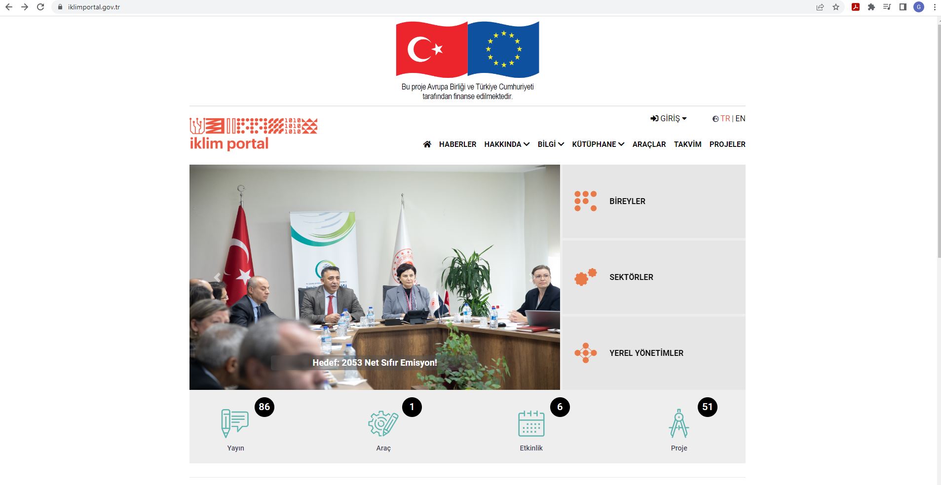 Türkiye Cumhuriyeti ve Avrupa Birliği (AB) tarafından finanse edilen Türkiyede İklim Değişikliğine Uyum Eyleminin Güçlendirilmesi Projesi kapsamında, Çevre, Şehircilik ve İklim Değişikliği Bakanlığı İklim Değişikliği Başkanlığı ile Birleşmiş Milletler Kalkınma Programı (UNDP) iş birliğinde İklim Portalı kuruldu. Türkiyenin iklim hedeflerine ulaşmasına önemli katkılar sağlaması amaçlanan portal, Ankaradaki bir otelde düzenlenen programla tanıtıldı. Platformun, karar alıcılar ve bireyler için iklim değişikliği konusunda doğru ve güncel bilgiler sunacağı belirtildi.