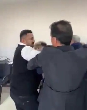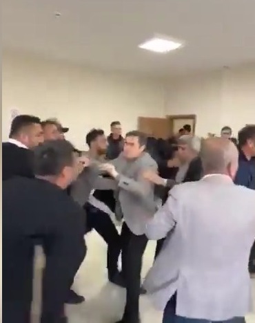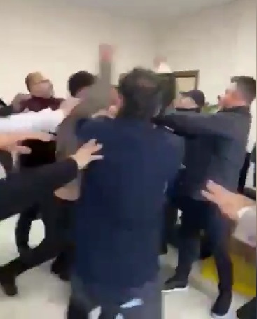 • Ceylanpınar ilçesinde belediye binasında aralarında personel ve müdürlerinde bulunduğu iki grup arasında çıkan tekme, tokatlı kavga cep telefonu kamerasıyla kaydedildi. Fotoğraf:Şanlıurfa, (DHA)